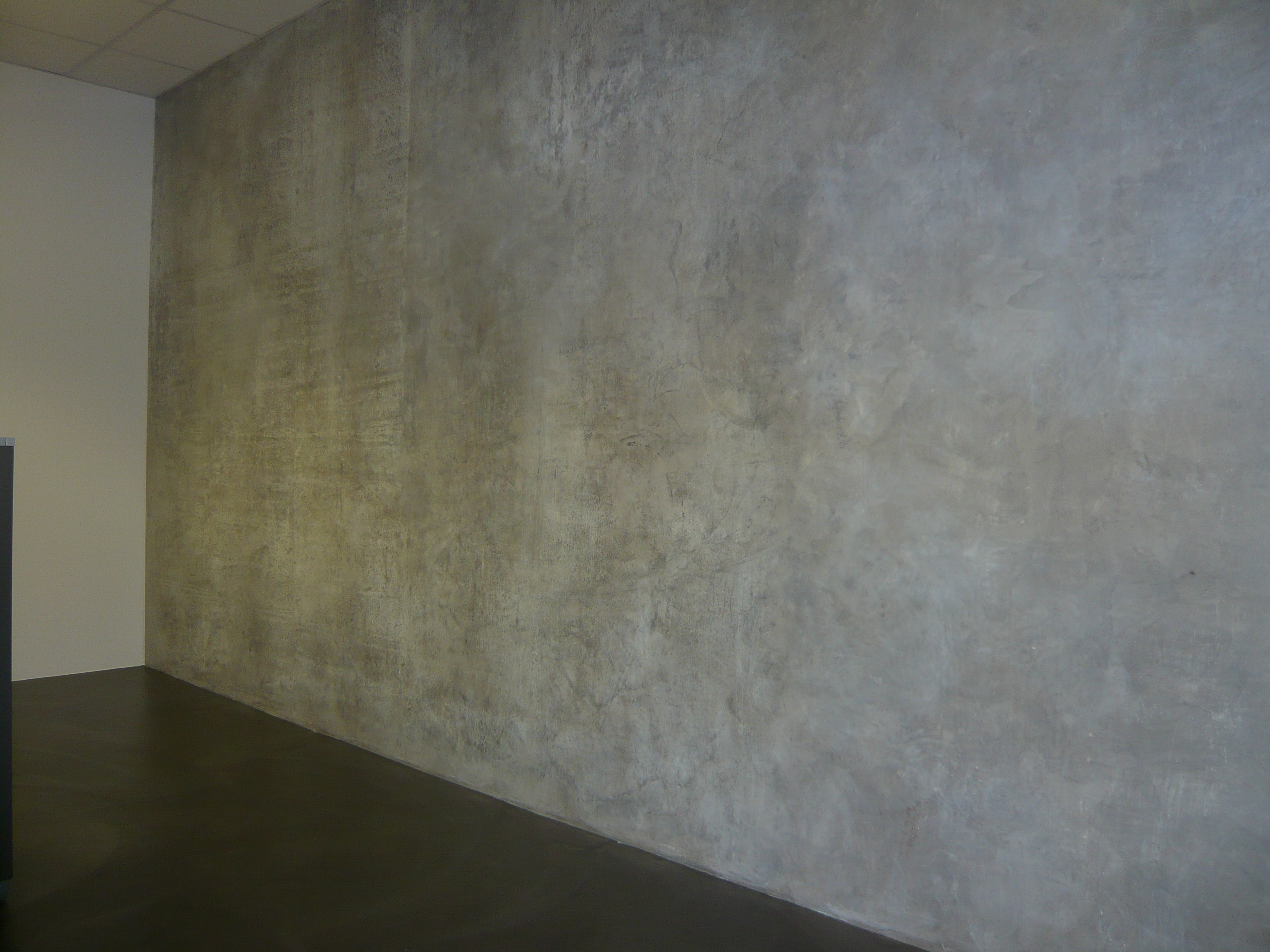 WAND:mehrschichtig gespachtelter, in der masse gefärbter gipsputz in dunkelbraun bzw.
