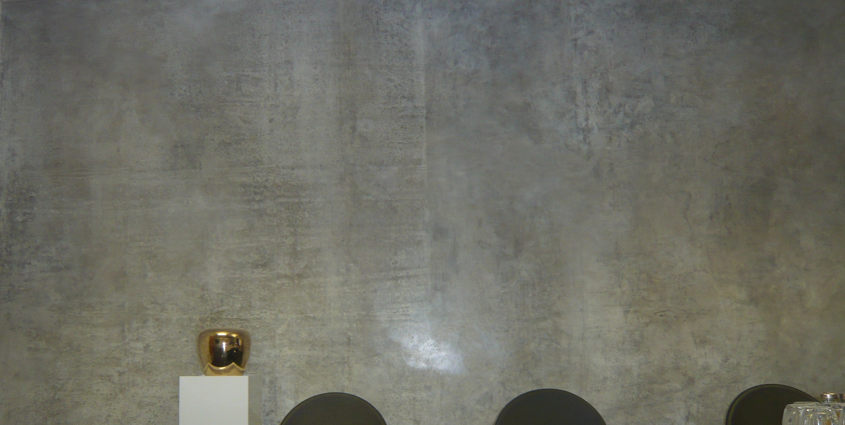 stucco veneziano in anthrazitgrau, gewachst und poliert.