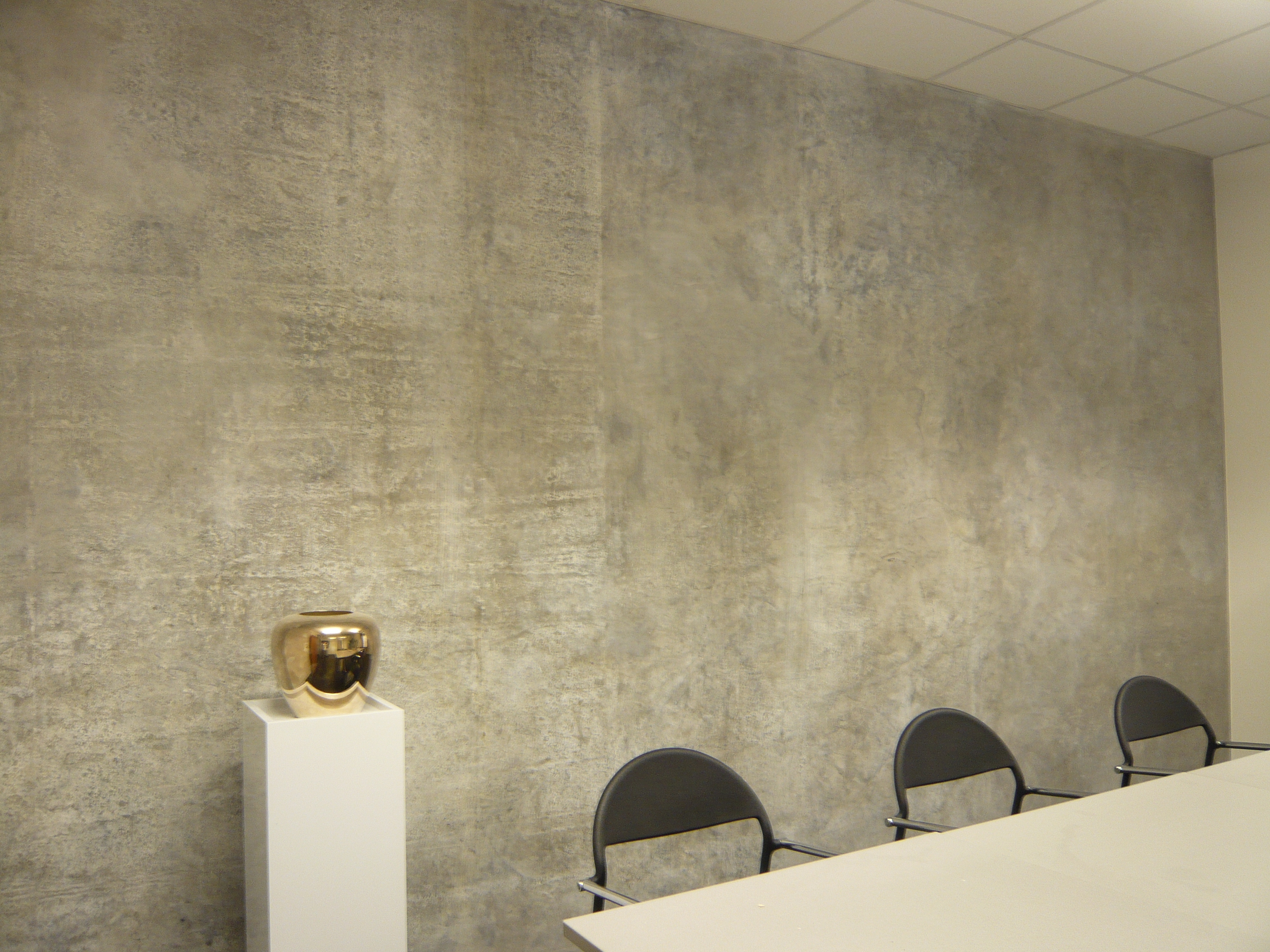 wand und boden mit verschiedenen materialien ton-in-ton cremeweiss gespachtelt, jeweils gewachst und poliert.