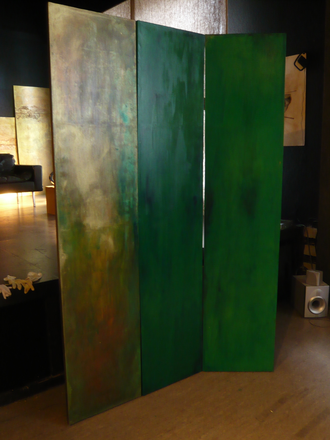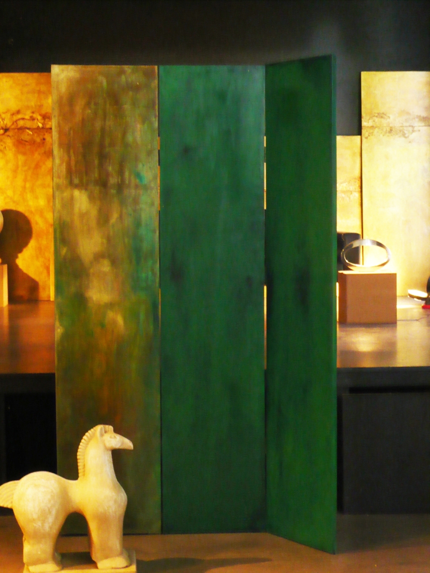 Die Paravents werden in Grösse und Oberfläche individuell für Sie handgefertigt. Beide Seiten werden verschieden gestaltet.